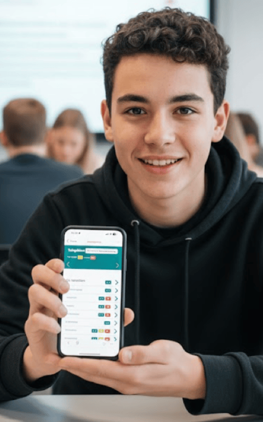 Vinger-opsteek functie: Leerlingen steken hun vinger op via de app - jij ziet direct of er vragen zijn. Meer betrokkenheid, minder chaos in de klas.